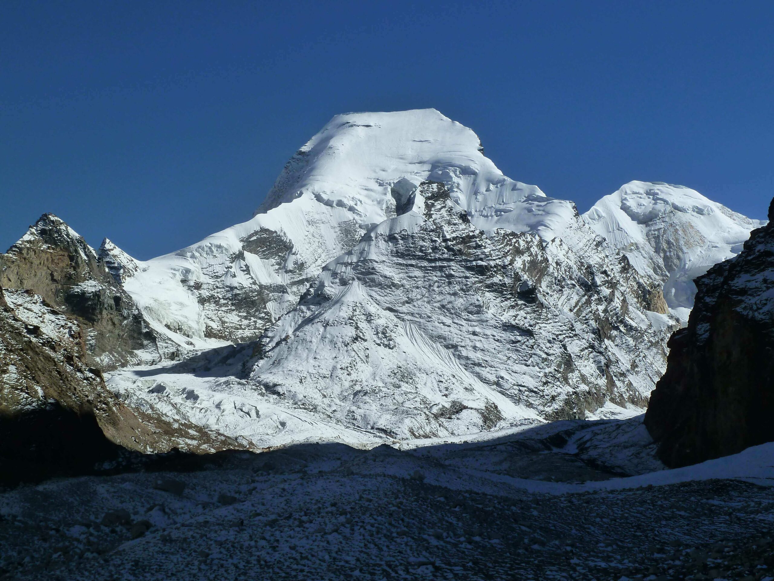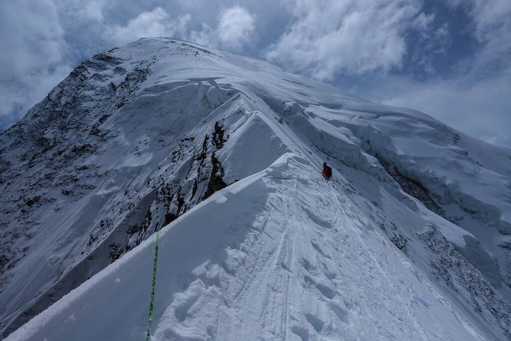 The expedition is considered technically challenging and is suitable for experienced climbers with prior high-altitude climbing experience. It involves technical ice and rock climbing.