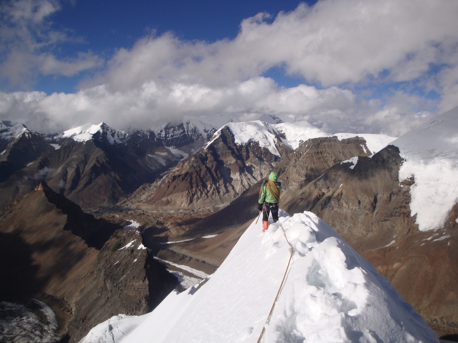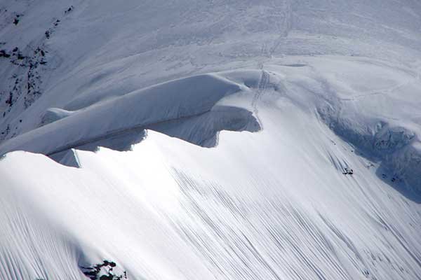 - Glacier travel, snow climbing, technical equipment used throughout climb.